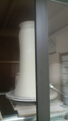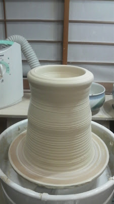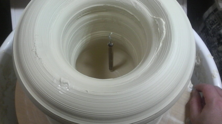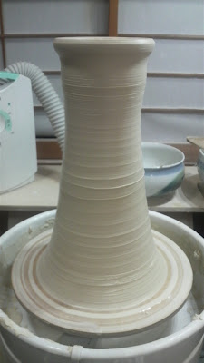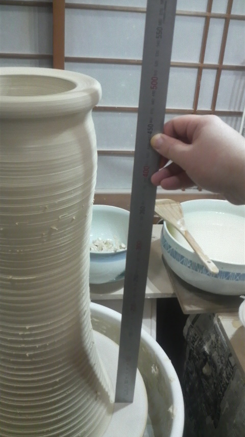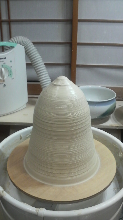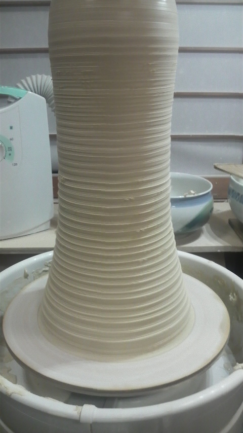 7月の個展の作品をボチボチ作り始めてます。今日は大壺の下準備、筒上げ。