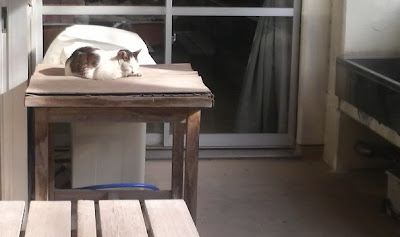 写真は時々陶芸教室にあらわれる猫ちゃんです。あったかそうだな〜。