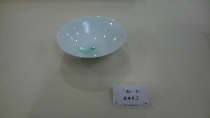ボクは広島の美術館へ出品してた白磁鉢「蓮」を出品。