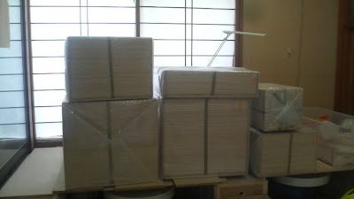 段ボールから注意深く桐箱を出しながら数をチェック。