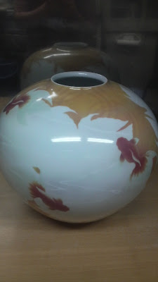 金魚の大壷の絵付けをブログで紹介しつつ、焼き上がりがどうなったか、どこの展覧会に出すのかとか、、紹介していませんでしたね。。
