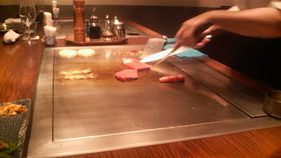 鉄板の上で器用に切りながらミディアムな感じで。