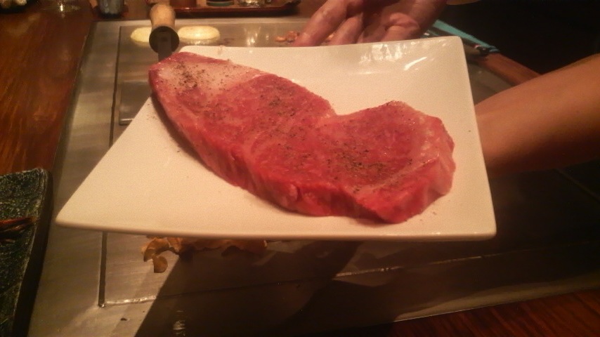 鉄板の上で器用に切りながらミディアムな感じで。