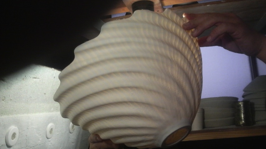 室伏さんの透光性のある練込作品。電球で透かされた器に美しい文様が映し出され、、シンプルでありながらドラマチックな器。陶芸という枠を超え、美しい物がそこにある。工芸の可能性を感じた瞬間でした。初出品初受賞、、納得です。