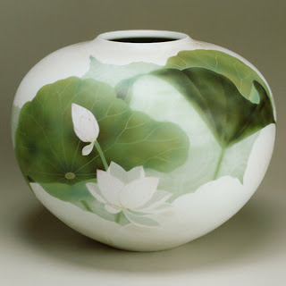 | 受賞作「吹染蓮図大壷」 |