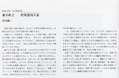 図録には審査員の竹内先生から解説を書いていただいております。表彰式の後「仕事で海外へ行っていて事前に技法などについて質問のお電話が出来ませんでした。作品を見た感想になってしまい申し訳ありません」とご丁寧に挨拶いただき恐縮でした。